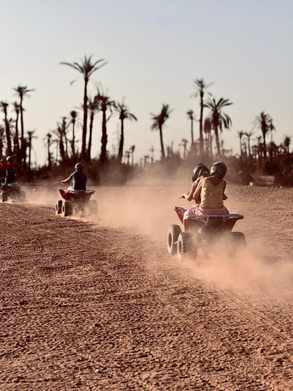 Nous proposons des excursions personnalisées en quad, buggy et dromadaire, au cœur de la Palmeraie et du désert des Jbilets. Que vous soyez en solo, en couple ou en groupe, chaque sortie est pensée pour vous offrir des sensations fortes, des paysages spectaculaires, et une immersion authentique dans la nature marocaine.